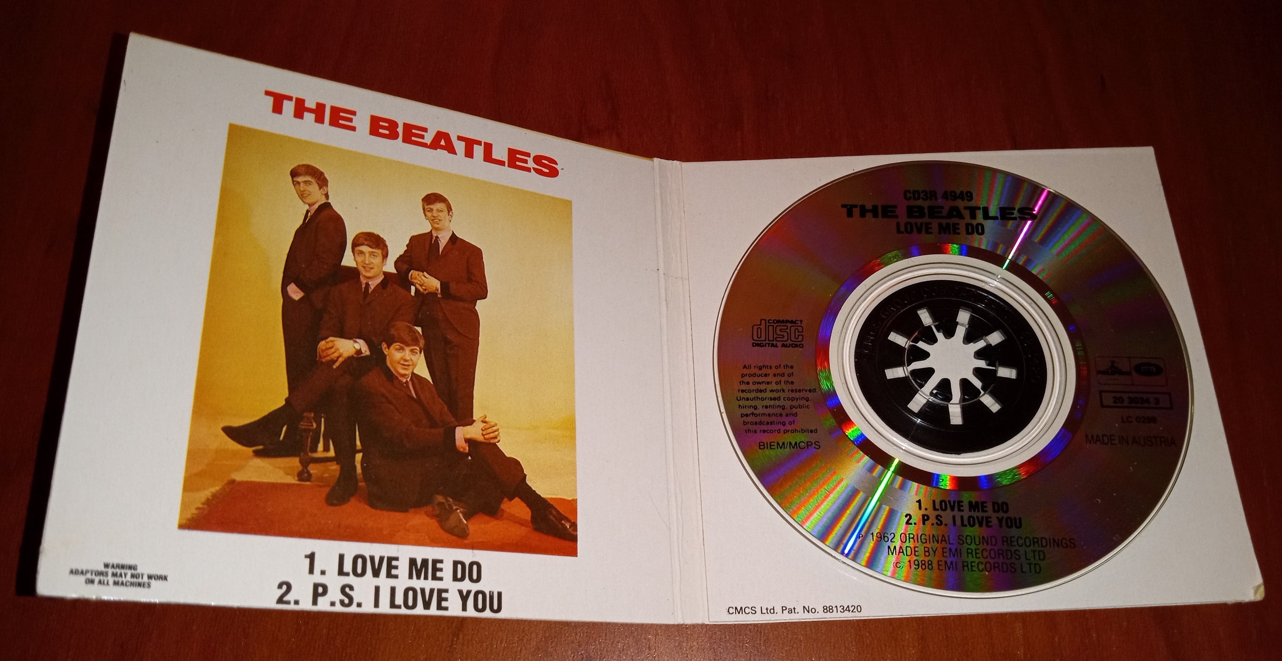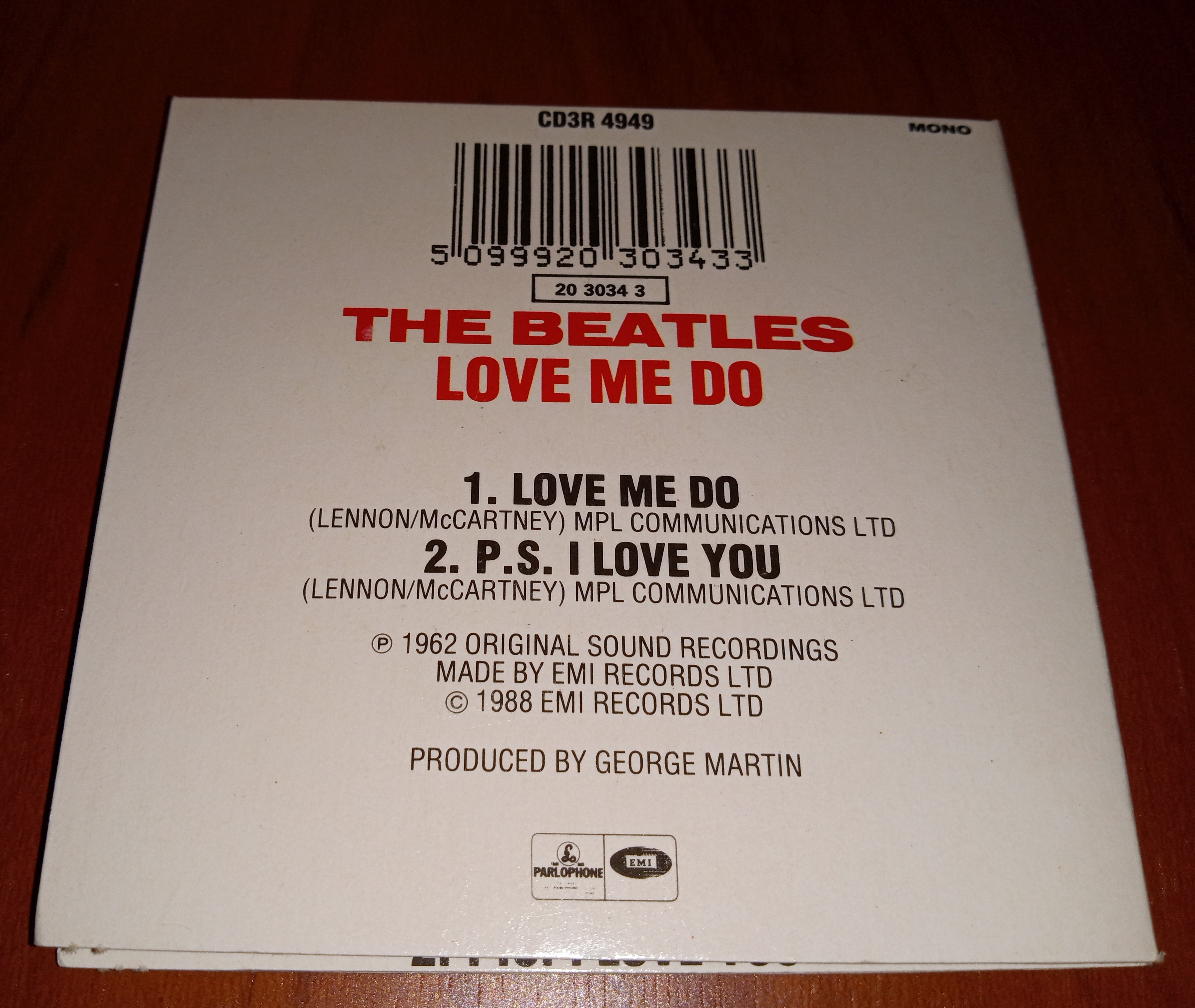 Anyway there are a few different versions of “Love Me Do” from my collection featured in the photos above including the now thirty year old (double yikes) 1992 UK and US CD 30th anniversary editions of the “Love Me Do” 45 plus a mini CD version from the mini CD box set of “The Beatles Singles Collection” box set.