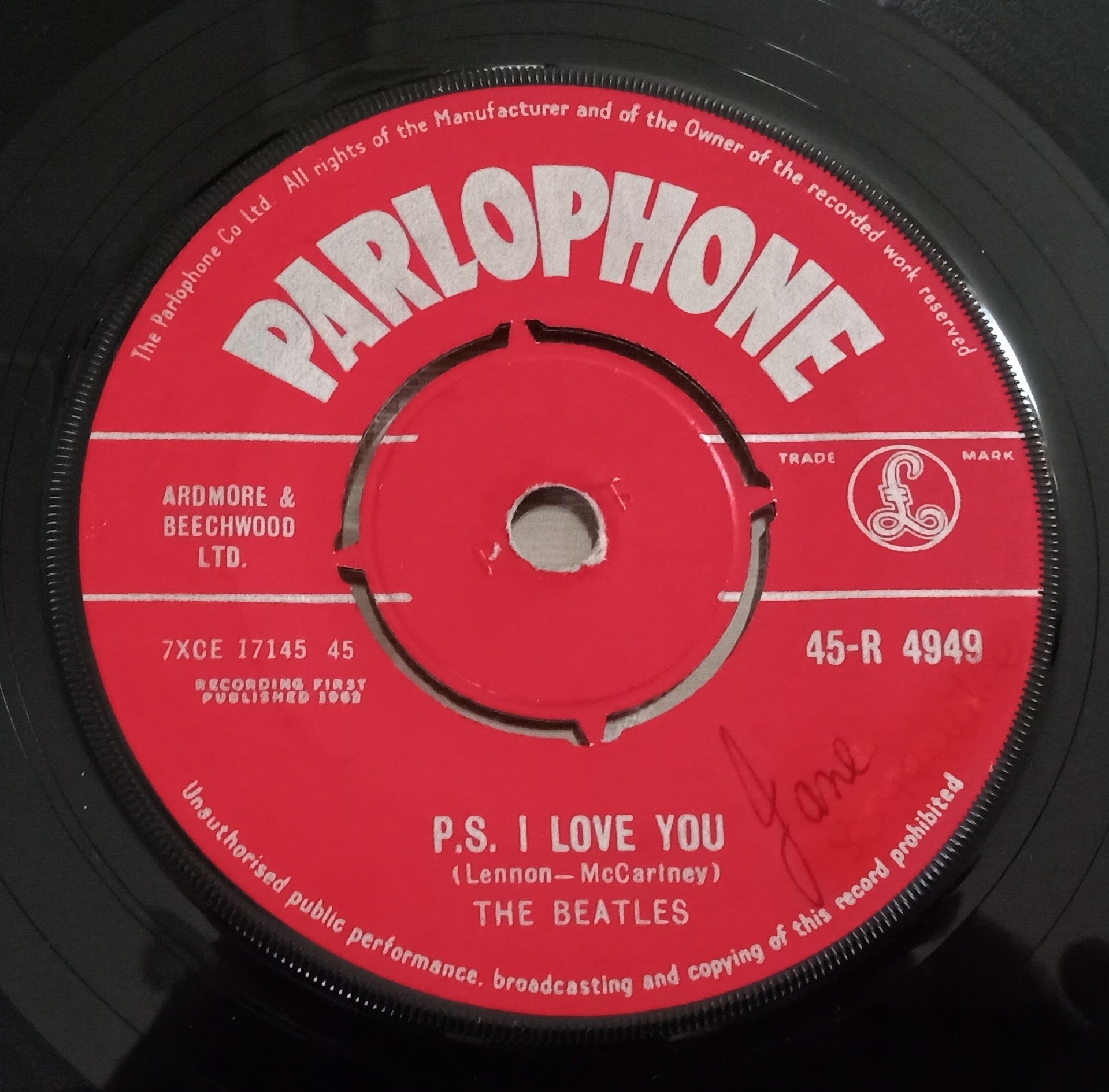 Because the master tape is now gone the best way to hear the “Love Me Do” 45 songs is from an actual first issue copy of the single. It’s the closest sound to the original master tape and even though the dubs on CD sound good there is an extra sparkle and warmth on the original 45 that isn’t found on any other version of these two songs.