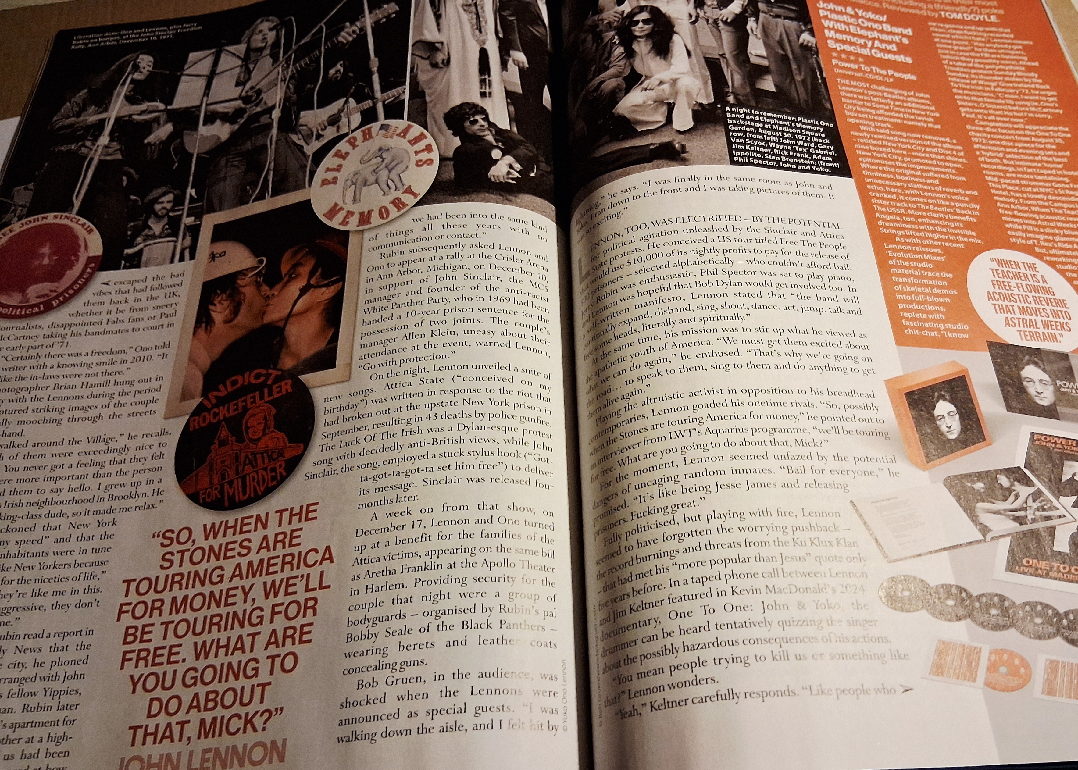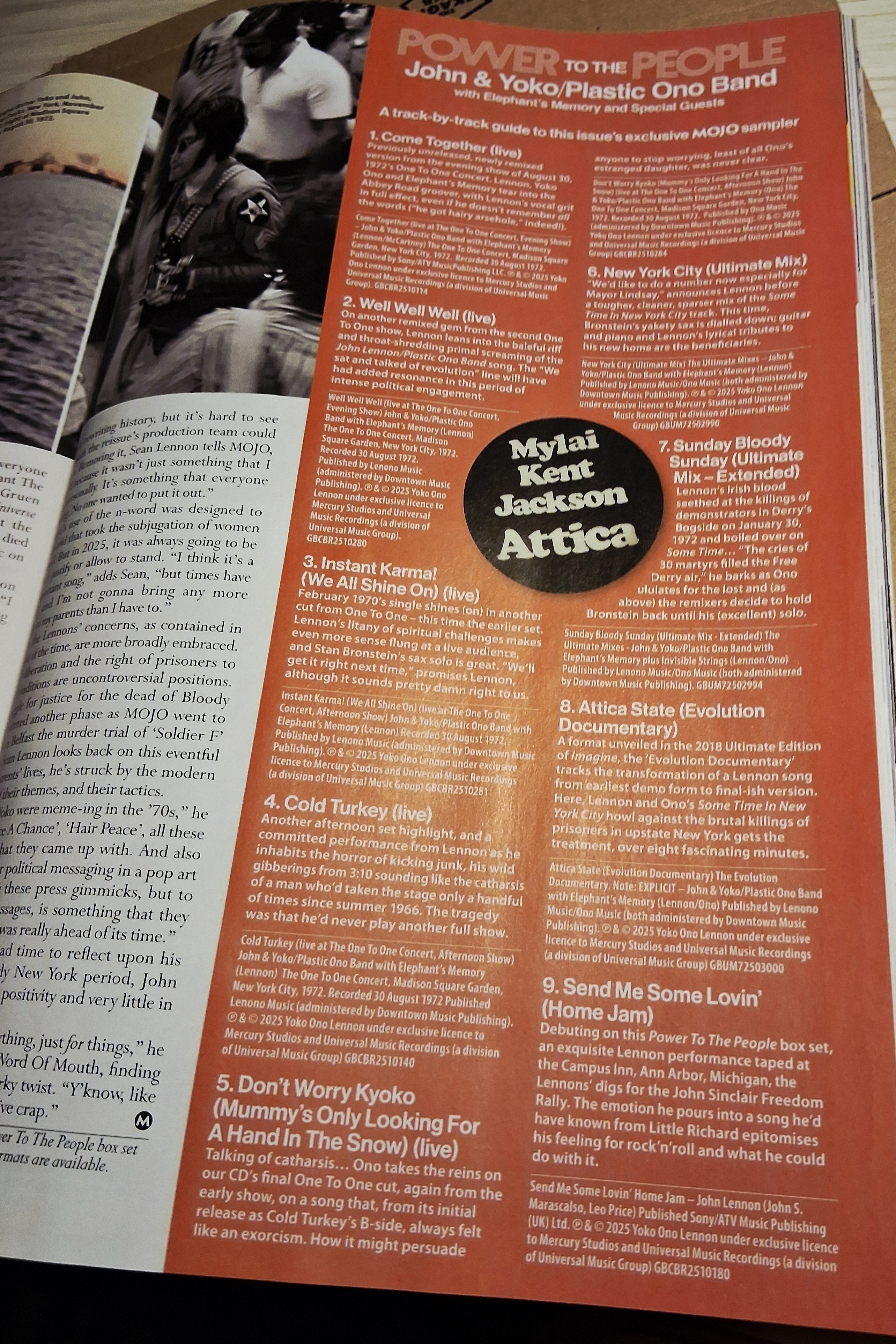 Coming in at just over 46 minutes, the Mojo sampler not only gives you five songs from the One to One shows but you also get my favorite two songs from the “Sometime in New York City” album, “New York City” and “Sunday Bloody Sunday”, in superb remixed and improved sound but you also get the song “Attica State” as an evolution documentary (eight fascinating minutes from demo to studio workout) as well as a home jam of the song “Send Me Some Lovin'”.